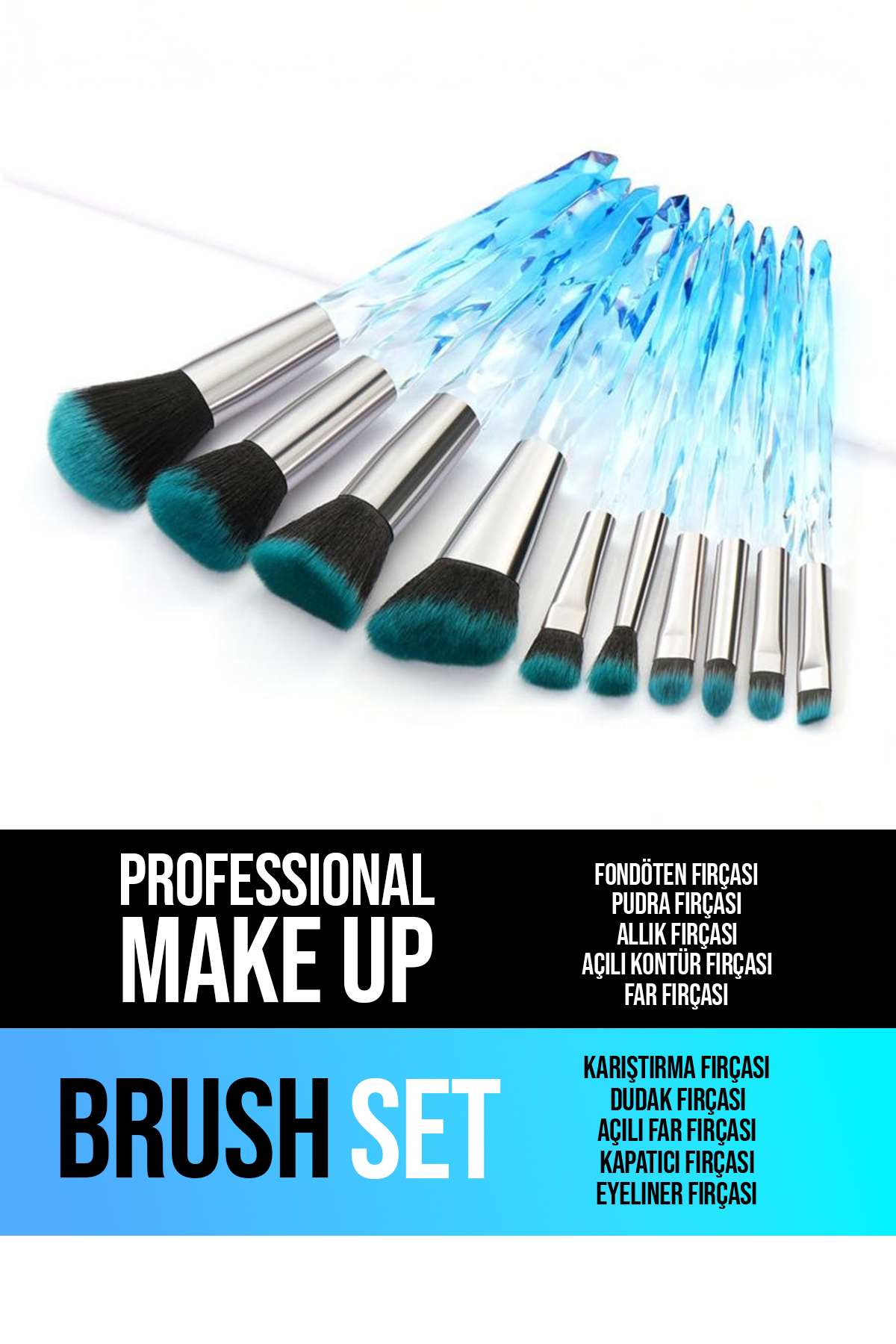 10'lu Kristal Profesyonel Makyaj Fırçası Seti